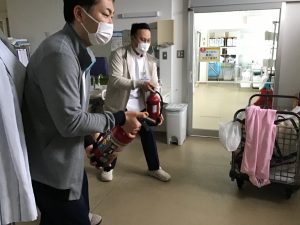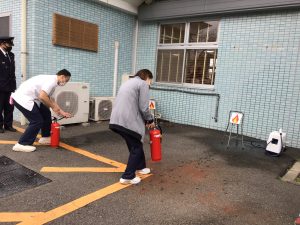 訓練後には消火器の操作実習も行い、「火事だ!」と大きな声で周囲に異変を知らせる発声練習などを通じて、非常時における初動の大切さを改めて再認識する機会となりました。